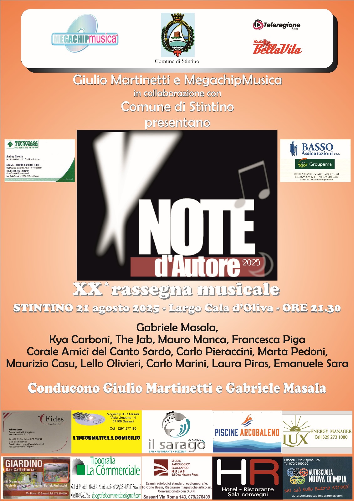 Il 21 agosto alle 21.30 la storica rassegna musicale "Note d’Autore" compie vent’anni e festeggia con una serata carica di emozioni e talento. Sul palco si alternano artisti, band e…